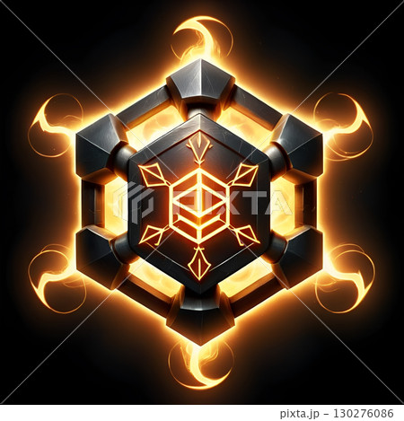 Unleash cosmic energy with this glowing, futuristic geometric artifact radiating powerful golden light and intricate design