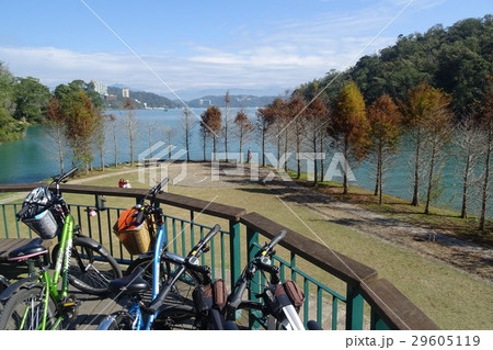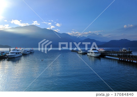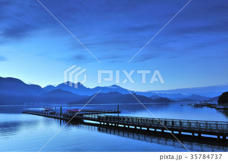 中華台北,臺灣,南投,魚池鄉,日月潭,湖泊,水,船,山,清晨,藍色調,晨霧