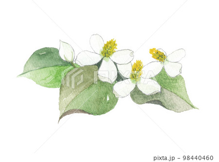 健康的茶葉材料·花朵時的甲蟲Dokudami·無切白色背面側身位置開銷