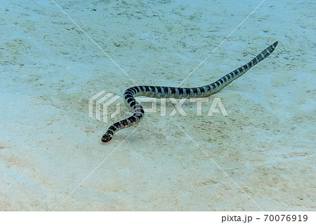 Nishihama海灘的海蛇水下的照片在沖繩島Akajima的