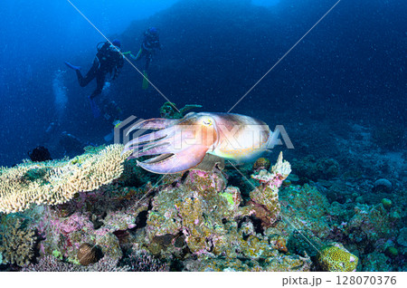 新鮮的魷魚魷魚,魷魚魷魚,鯖魚強盜。這是一個稍小的家製魷魚。未經加熱和未煮過。