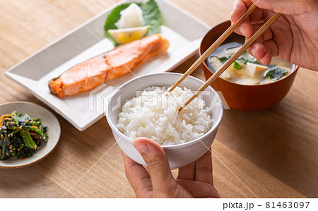 家常日式烤三文魚套餐(米飯、味噌湯、納豆、泡菜、冷豆腐、小碗)