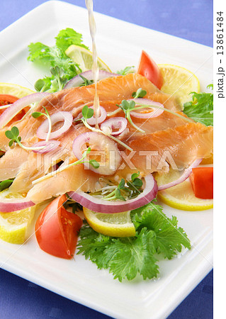 家常質樸的自製“醃三文魚”水彩風格圖片信