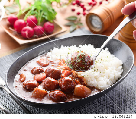 肉丸咖哩(肉丸的味道滲透到咖哩裡,很好吃!) 肉丸咖哩