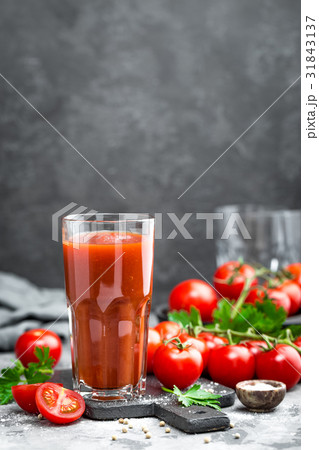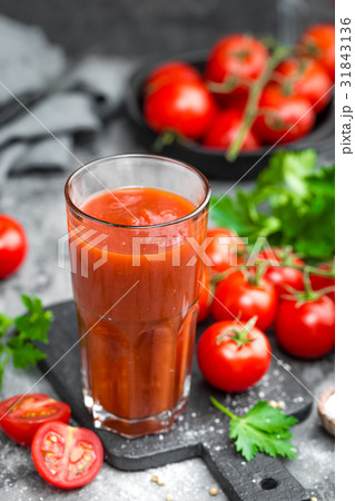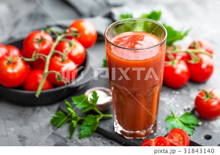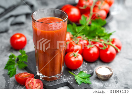 Fresh Tomato Juice with Whole and Sliced Tomatoes