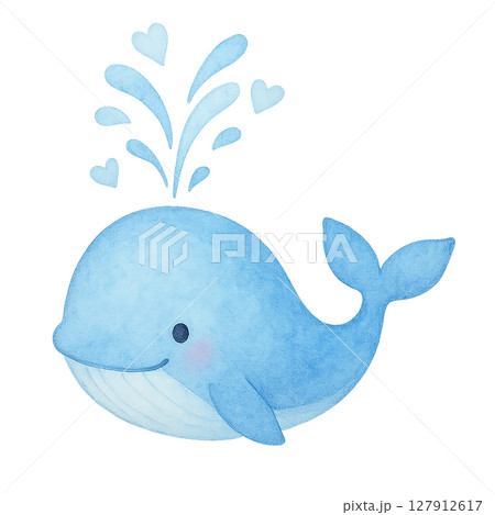 Marine animals include Whale, Manta Ray Cartoon and Starfish, Watercolor Hand-drawn Illustration
