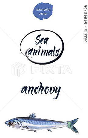 Fresh anchovy, marine atlantic ocean anchovy or sea anchovy fish species. Watercolor hand drawn illustration