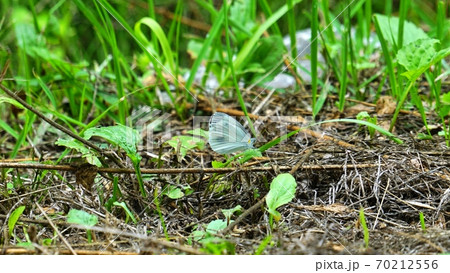 坐在草地上的整潔的白色蝴蝶
