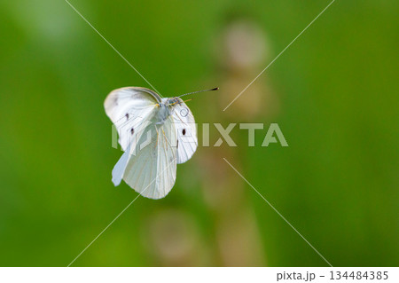 菜粉蝶(春季型,雌性)停在一片葉子上