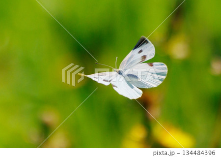 一隻雌性春季菜粉蝶停歇在艾蒿葉上