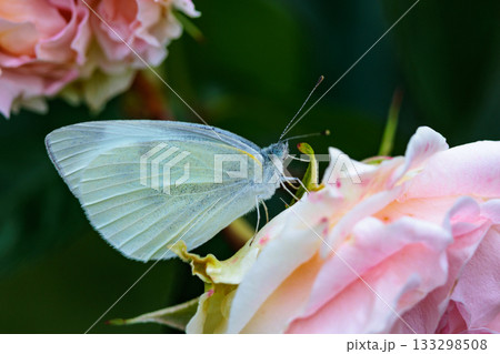 吸食玫瑰天竺葵花蜜的白菜蝴蝶