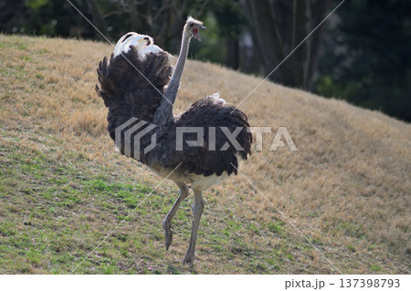 雄性鴕鳥在草地上行走