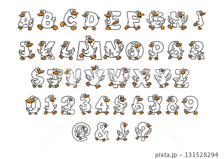 Cartoon Goose Alphabet, Numbers, and Symbols Set
