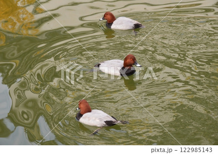 三隻雄性杜鵑在游泳(岸和田城護城河/大阪府岸和田市)
