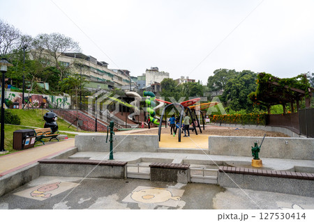 2025 台灣鶯歌。台灣永吉公園沙基遊樂區的山坡上的斜坡。