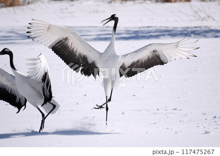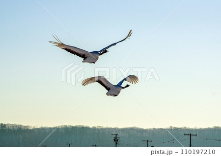 寒冷的早晨丹頂鶴在藍天飛翔的印象