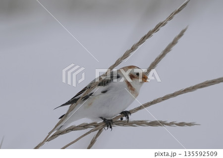 雪鹀棲息在雪地上