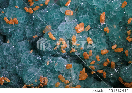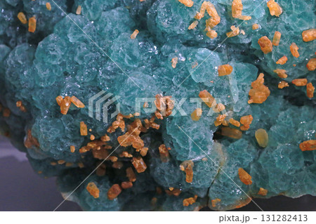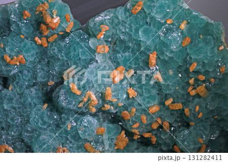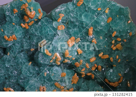 在博物館裡拍攝產自中國河南的螢石與方解石