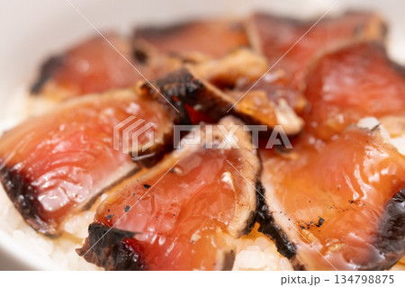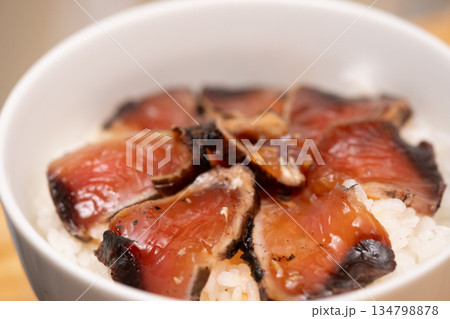 醃製米飯配炙烤稻草烤鰹魚的圖片