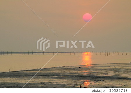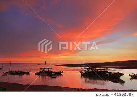 風景,天空,太陽下落,麗水捕魚港口,晚上太陽