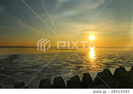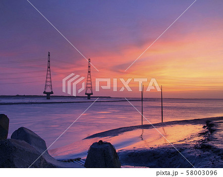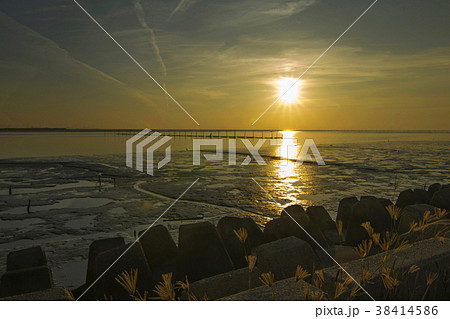 風景,天空,太陽下降,Tatsui Reisui漁港,傍晚的太陽