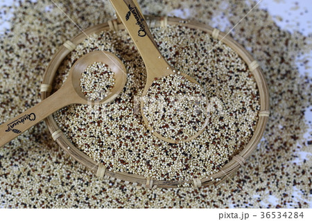 Quinoa on a black background and an inscription with a finger - Quinoa