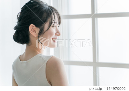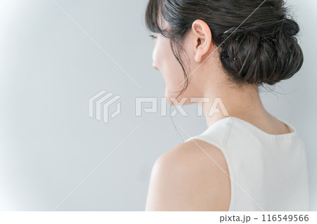 一個女人的後視圖,有頭髮排列、總結頭髮、頭髮套裝