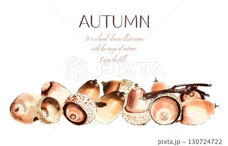用水彩(光柵)繪製的落葉和橡子