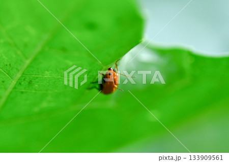 橙色黃瓜甲蟲吃葛葉、蟲蛀的葉子
