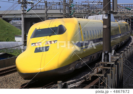 日本東京城市景觀。圖中可見新幹線子彈列車「黃博士號」(象徵好運)、東京車站、列車、八重洲車站及其他建築。