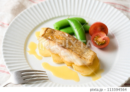 煎鯛魚配醬汁拼盤