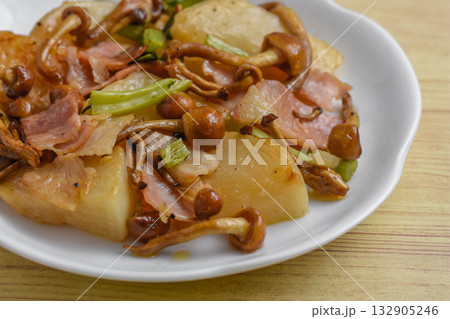 奶油醬油炒雞肉、地瓜、蓮藕