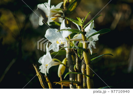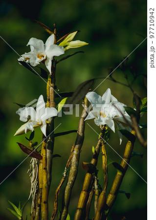 White orchids are blooming in the forest.Is an orchid that is found on the top of Doi Inthanon, Thailand