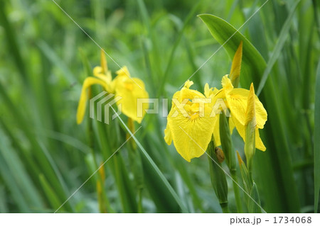 岩手縣平泉市六月底的Motsuji寺,濕透的新鮮鳶尾花