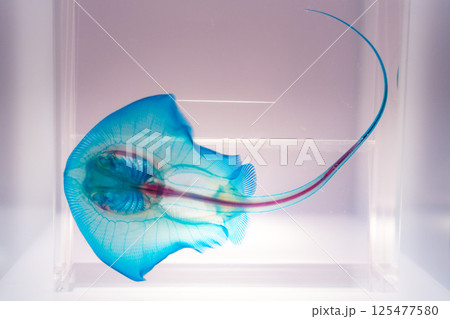 珊瑚礁上游泳的蝠魟的CG插畫圖片素材