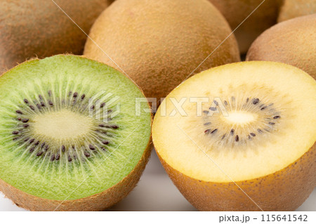 綠色獼猴桃和金色獼猴桃的特寫背景