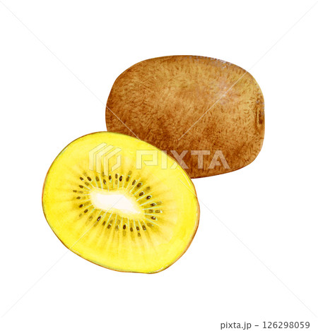綠色奇異果和金色奇異果橫截面的水彩插圖,白色背景上的切口