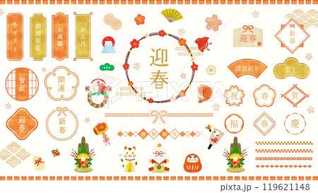 新年水彩風格日本材質套裝