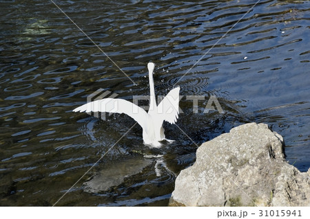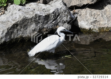 野生鳥類在東京三鷹走在Sengawa淺層傳播羽毛