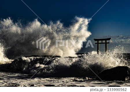 大洗磯崎神社波浪飛濺