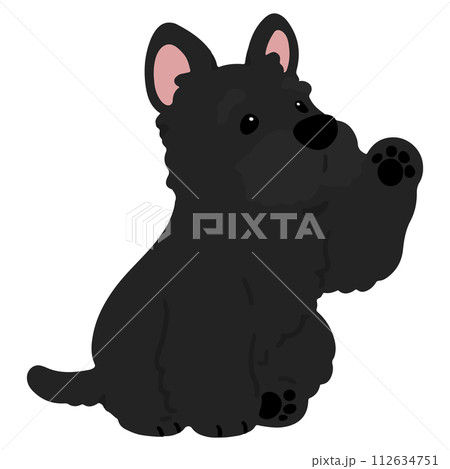 簡單可愛的黑色蘇格蘭梗揮手的插圖,沒有主線