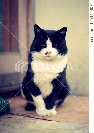 貓和窗戶_窗戶和貓_黑白八件燕尾服貓在窗邊頑皮地擺姿勢