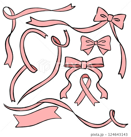 Pink bow or ribbon designs for decoration, patch, brooch, fabric print, breast cancer awareness campaign, logo, icon, sign, symbol, fashion, accessory, women costume, sticker, wedding card, tattoo