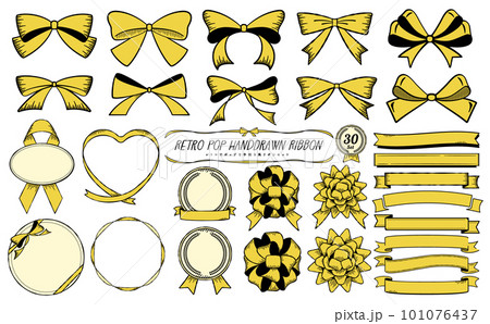 復古流行和可愛的複古風格鋼筆明信片矢量絲帶插圖和框架材料 set_yellow