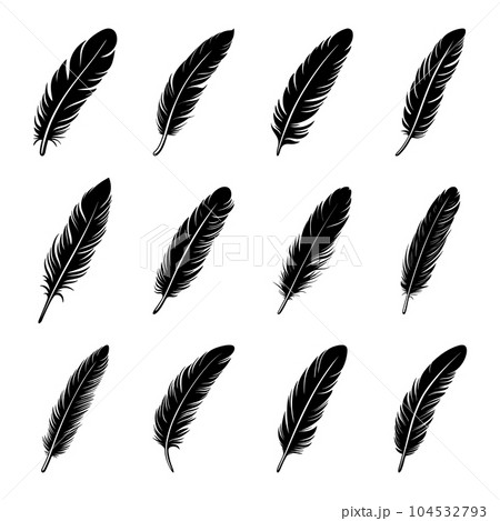 Vector Fluffy Feather Logo, Icon Set, Silhouette Feather Closeup Isolated. Design Template of Flamingo, Angel, Bird Feather. Lightness, Freedom Concept