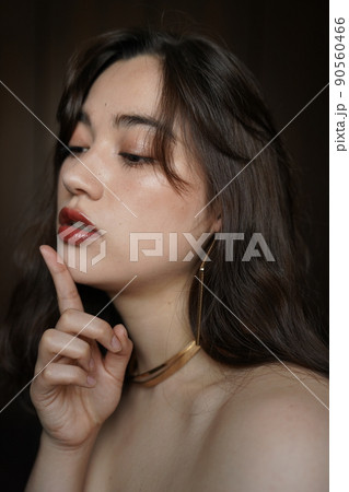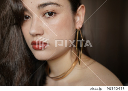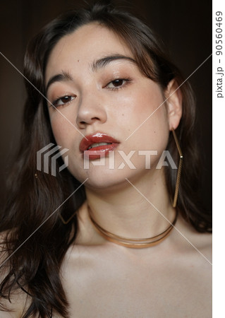 Portrait of a Beautiful Girl. Beauty Purple Hair and Fashion Makeup