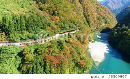 新鮮的綠色黑部峽谷,從山比子天文台看到的電車