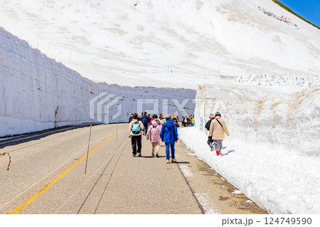 初夏的立山黑部阿爾卑斯山脈路線、積雪的室堂平、禦庫裡池