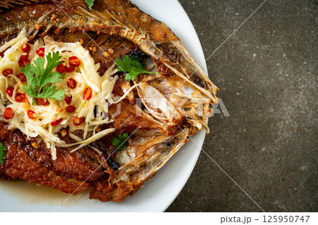 Fried Sea Bass Fish with Fish Sauce and Spicy Salad