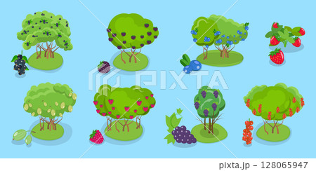 3D Isometric Flat Vector Illustration of Organic Fruits and Berries , Collection Of Shrubs Perfect For Gardens And Landscaping